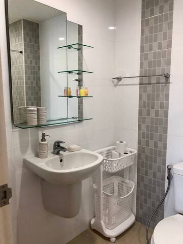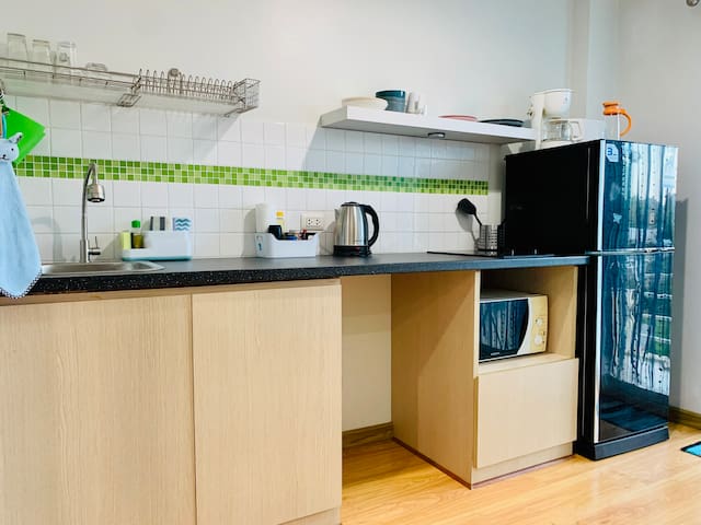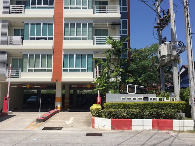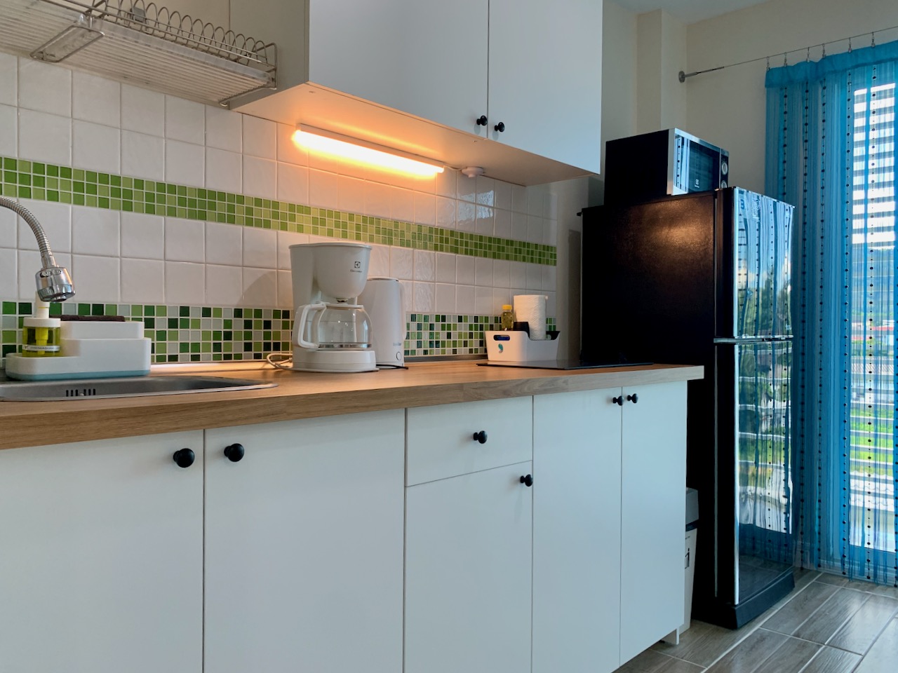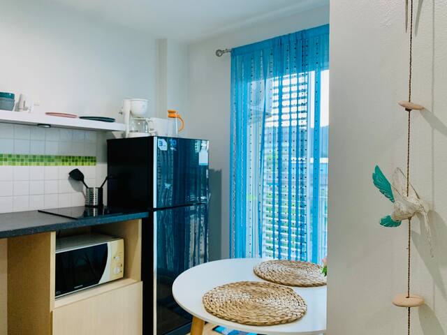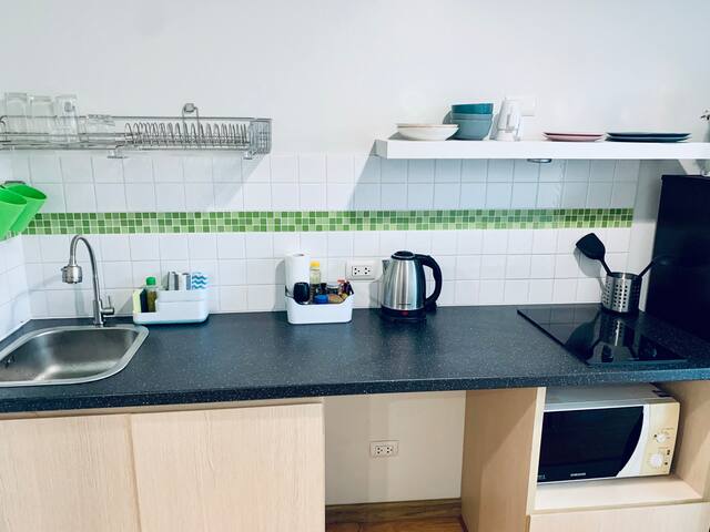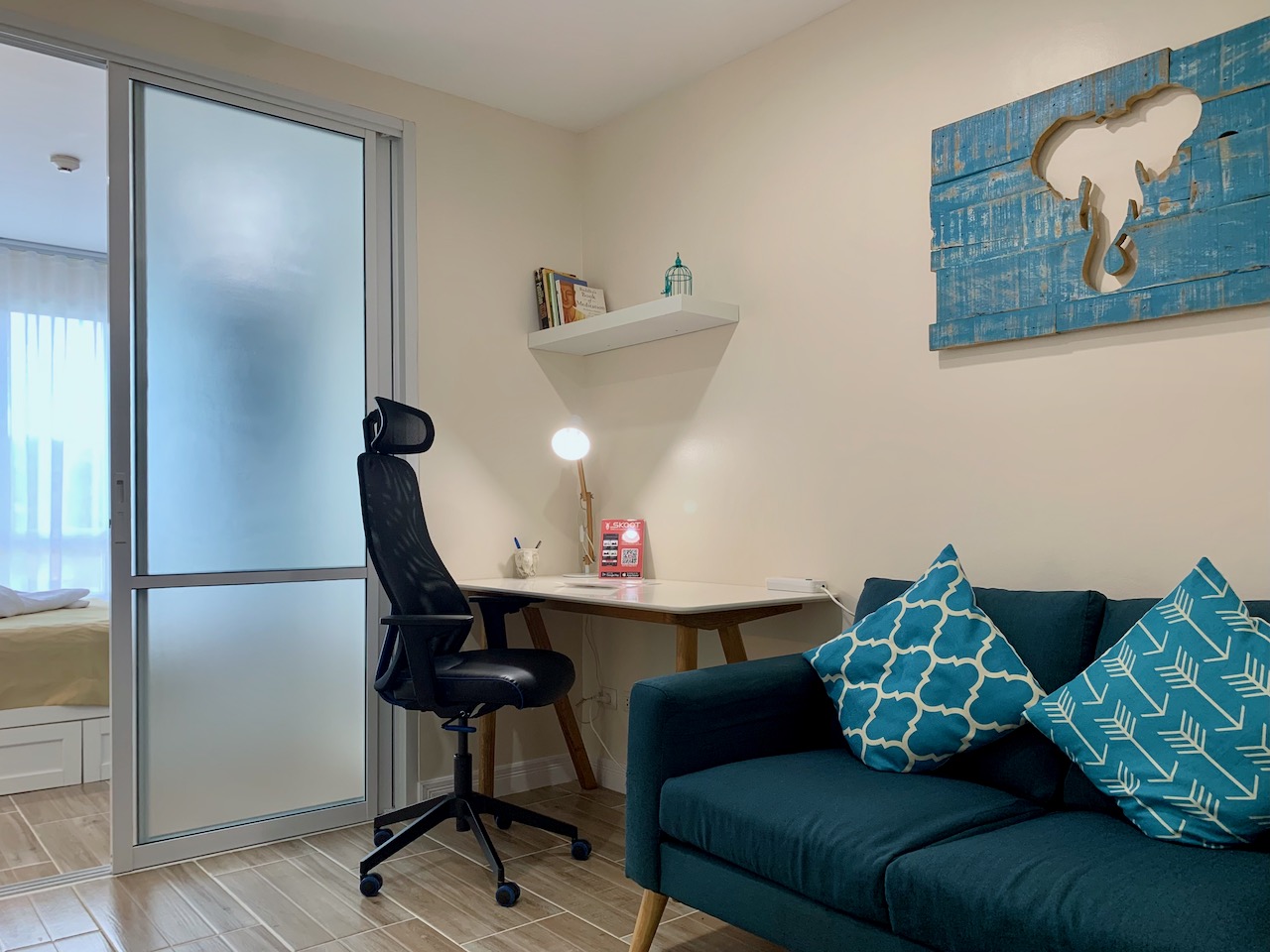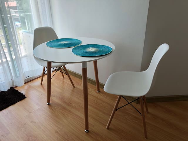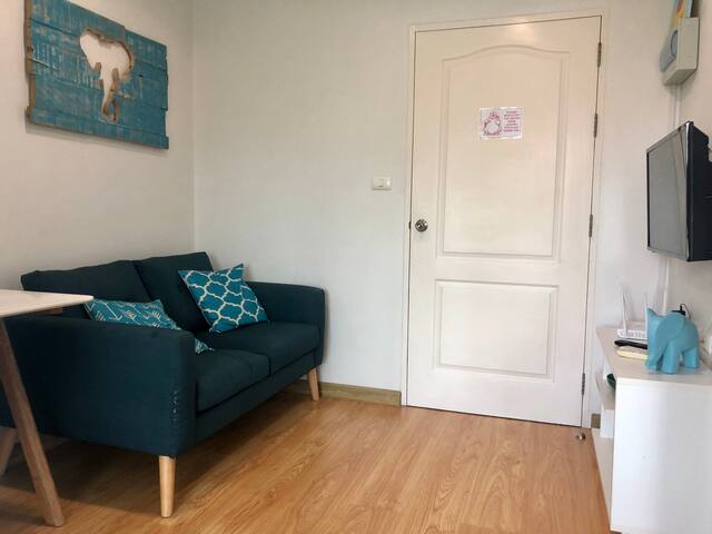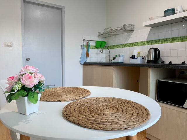 This recently renovated 30sqm condo on the 4th floor of PLUS Condominium offers a comfortable space with a separate bedroom, a cozy lounge, and a fully equipped kitchen. Amenities include a microwave, air conditioning, a TV with Google Chromecast for entertainment, and a small balcony with a beautiful mountain view and a hot water machine, making it a great choice for a relaxing stay.