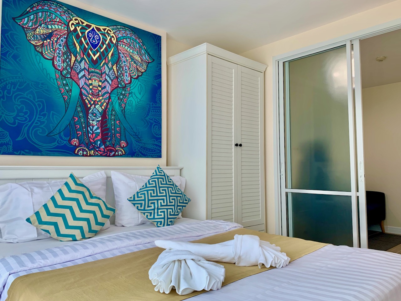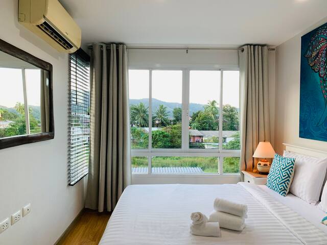 Located just 15 minutes from Patong Beach and Phuket Town, this 4th-floor condo is a great base for exploring Phuket. Enjoy a mountain view and a comfortable living space. The building has a small gym, but no pool. The apartment features a private 500/500 Mbps fibre-optic connection with a dual-band router—perfect for remote work or streaming.