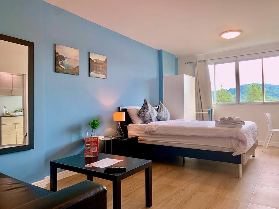 Notre studio, soigneusement conçu, dispose d’un lit confortable, d’une cuisine bien équipée et d’une salle de bain privative, pour un séjour agréable. L’espace, agrémenté d’un mobilier moderne et baigné de lumière naturelle, crée une atmosphère chaleureuse et accueillante. Que vous soyez ici pour la détente ou l’aventure, ce studio est le point de départ idéal pour explorer tout ce que Phuket a à offrir.