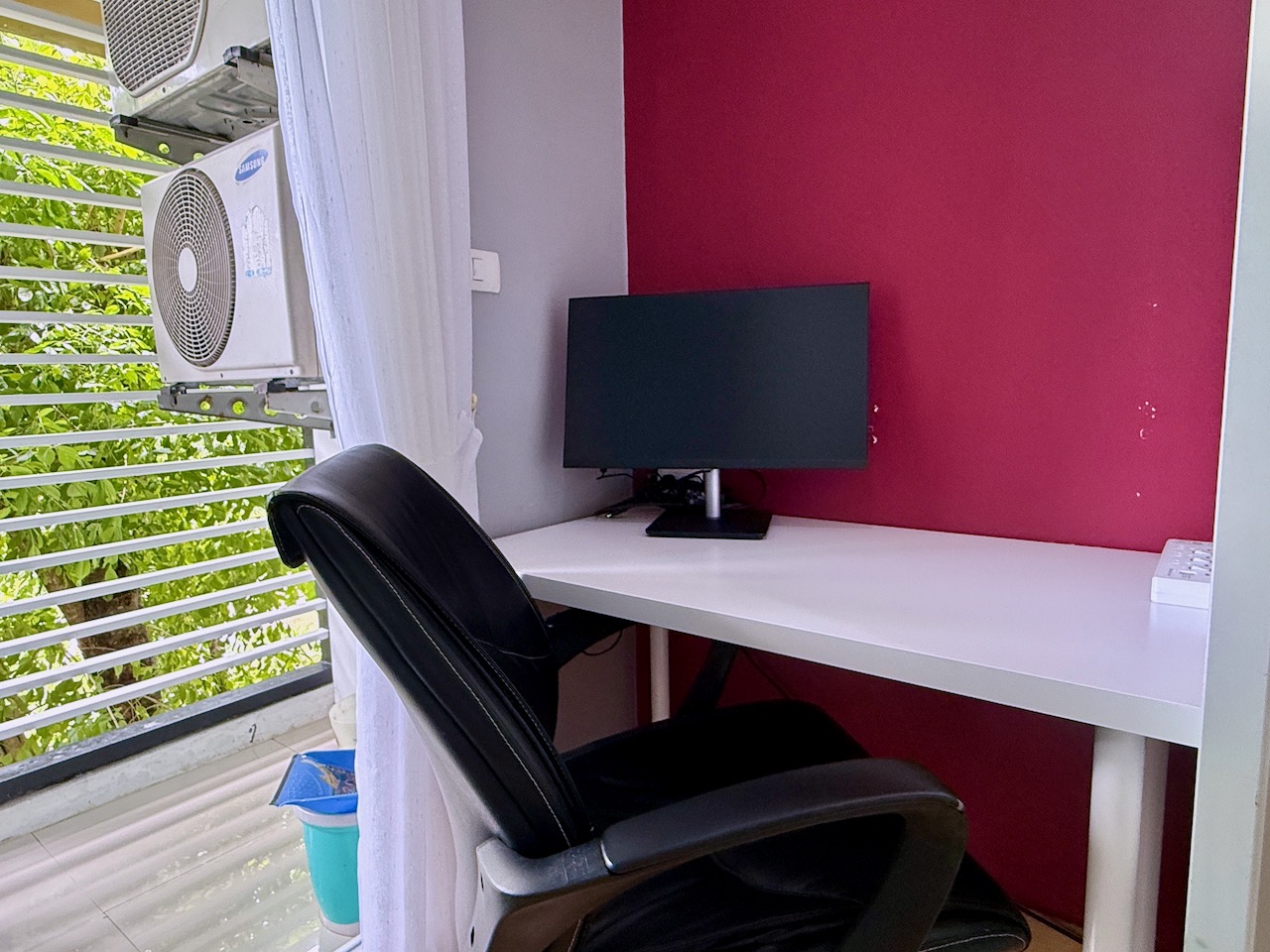 Guests have full access to the apartment, including two private balconies, a fully equipped kitchen, and a dedicated office space. The condominium offers a shared pool, gym, 24/7 security, and a laundry shop on-site. Don’t miss Jada’s Café downstairs—a cozy spot for coffee, breakfast, or meeting fellow travellers.
