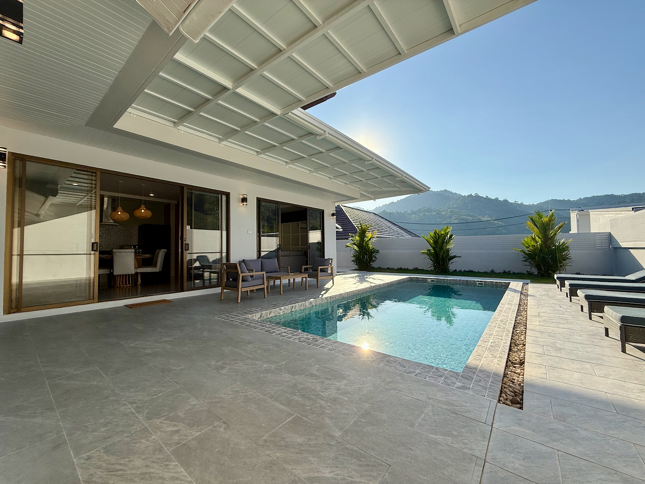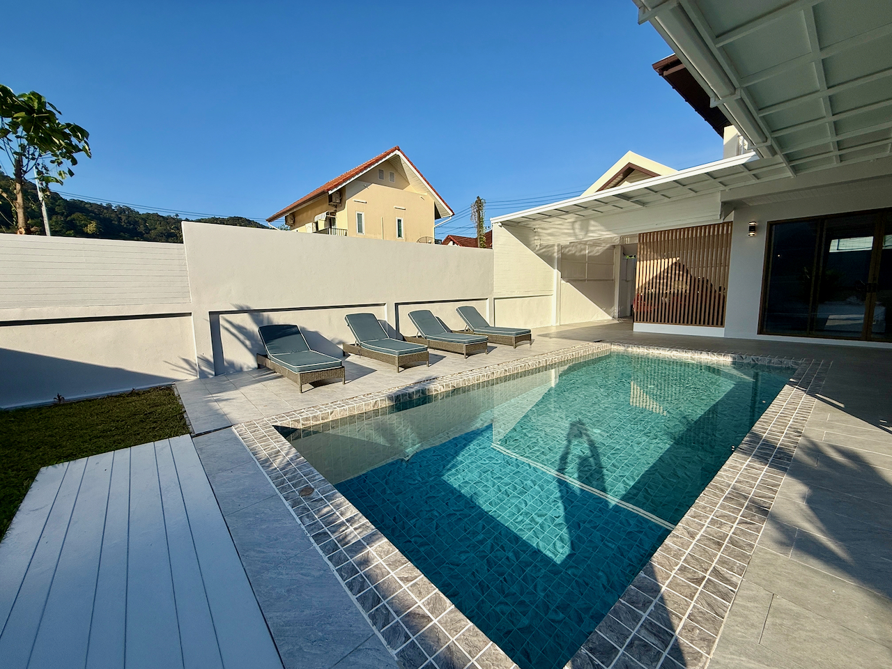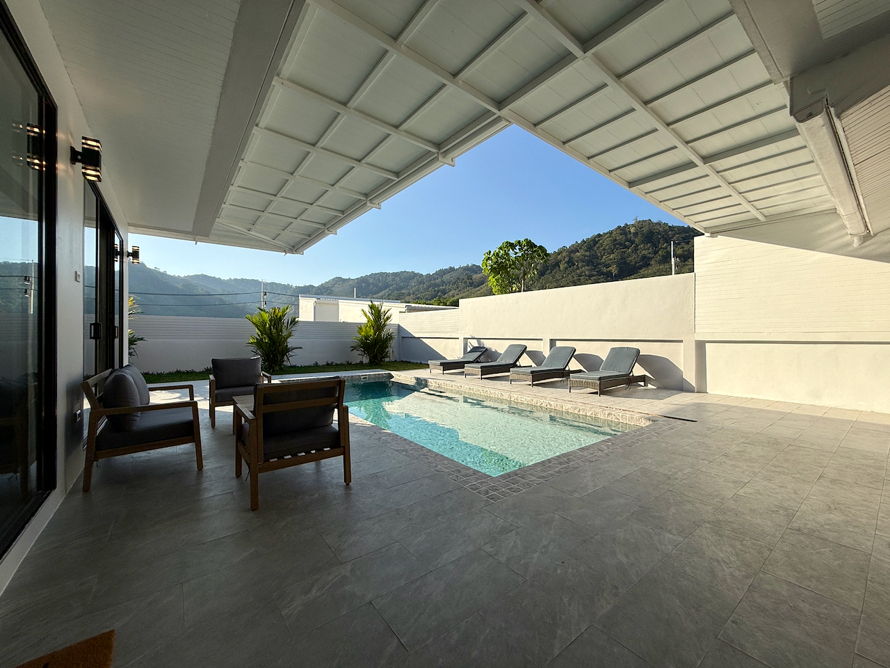 Located between Red Mountain Golf Club and Phuket Wake Park, this modern and family-friendly 3-bedroom pool villa offers privacy, comfort, and a central Kathu location — particularly convenient for families connected to British International School (BIS) or Kajonkiet International School (KIS), both just a short drive away.