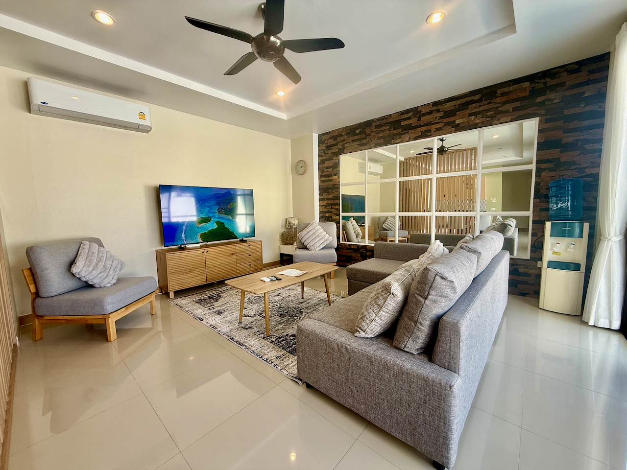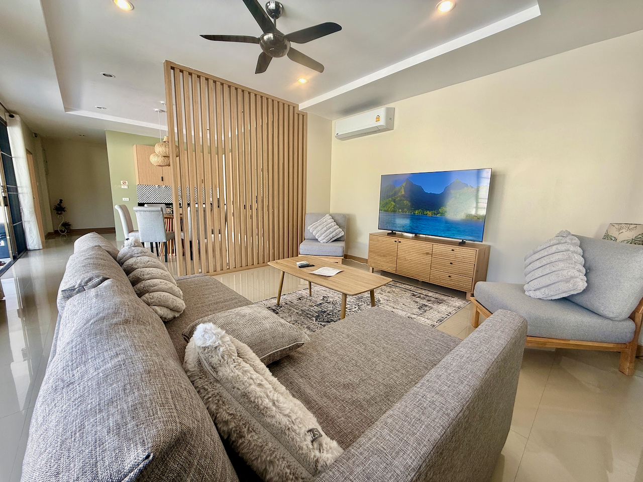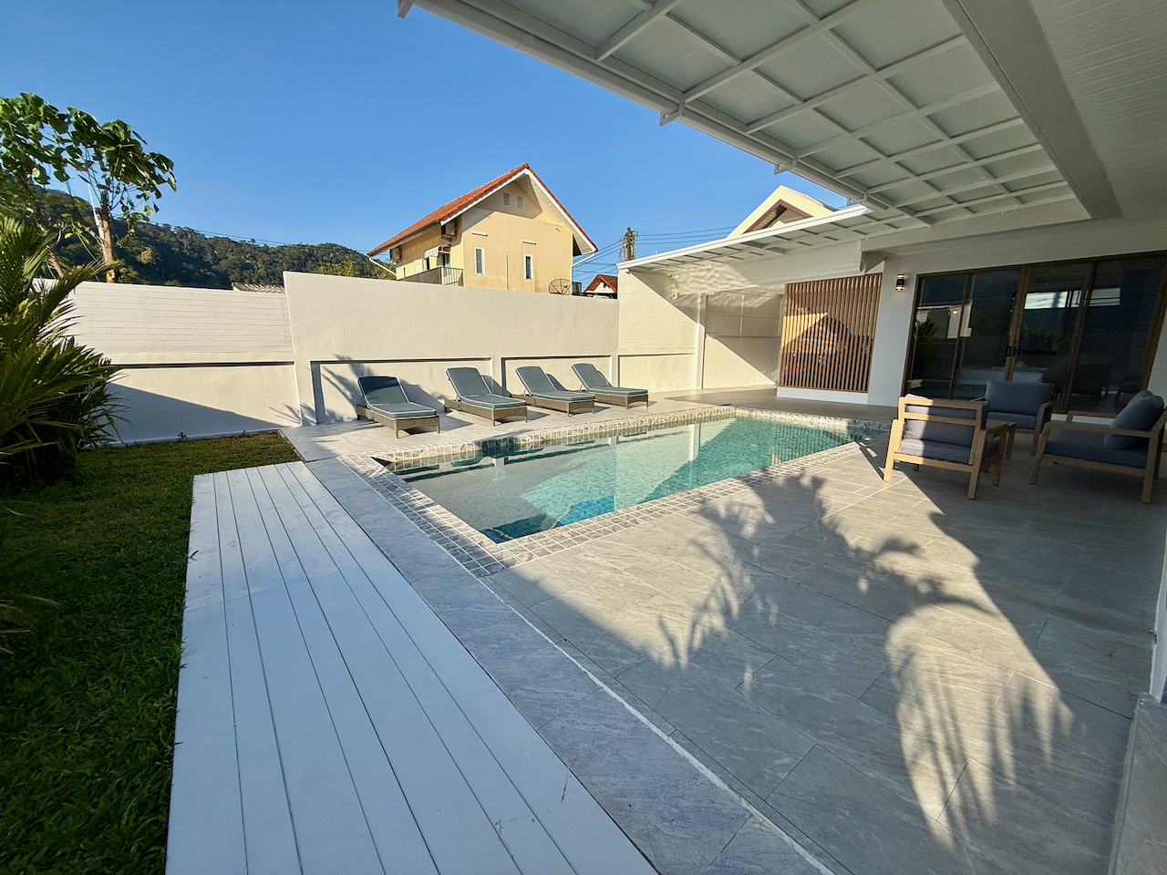 Located between Red Mountain Golf Club and Phuket Wake Park, this modern and family-friendly 3-bedroom pool villa offers privacy, comfort, and a central Kathu location — particularly convenient for families connected to British International School (BIS) or Kajonkiet International School (KIS), both just a short drive away.