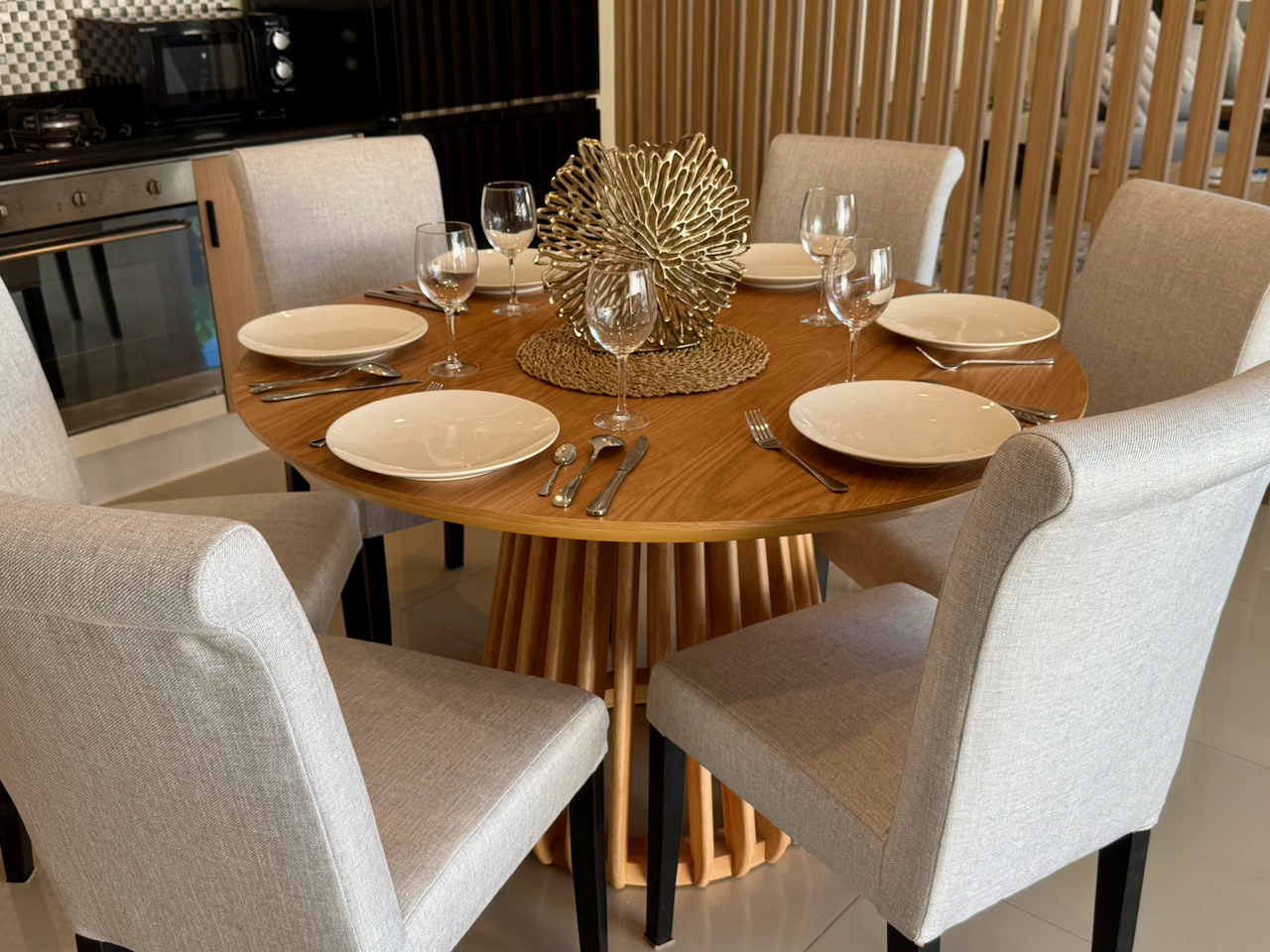The villa comfortably accommodates 7 guests, with the option to host up to 9 guests using the sofa bed in the living area. All three bedrooms are fitted with king-size beds, ensuite bathrooms, air conditioning, and ceiling fans. One of the bedrooms also includes an additional single bed, making it especially suitable for families. A separate guest bathroom is available for visitors.