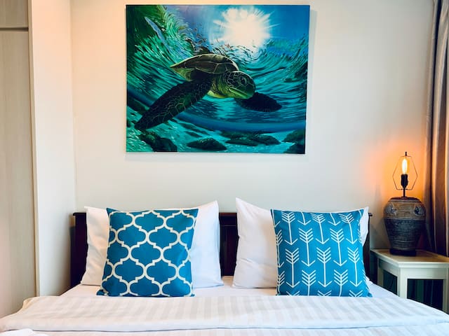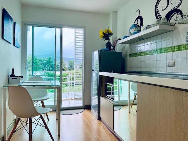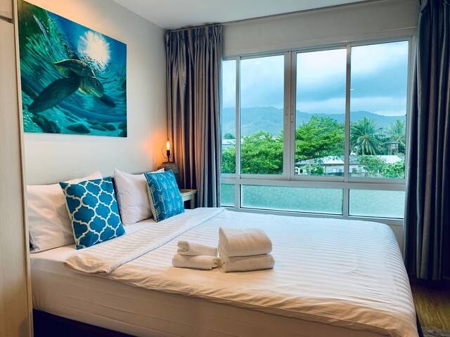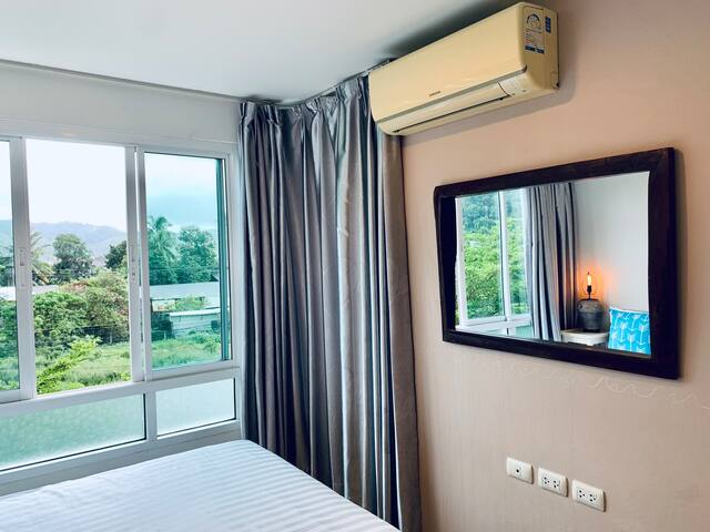 Centrally located just 15 minutes from Patong Beach and Phuket Town, this 4th-floor condo offers a comfortable stay with a mountain view. A small gym is available in the building, but there’s no pool. The apartment shares a fast 500/500 Mbps fibre-optic connection with the neighbouring unit, using a dual-band router—great for working holidays.