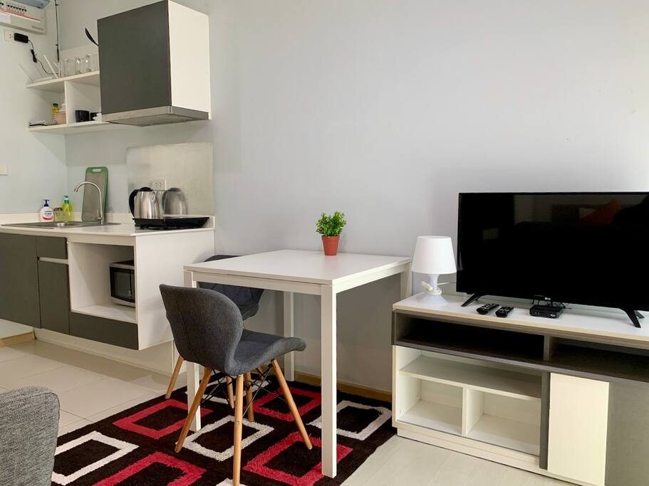 This 27sqm condo on the 7th floor of the ZCape III (Zcape 3) condominium features a separate bedroom, a lounge and a fully equipped kitchen. A microwave, 2 aircons, TV and a small balcony.