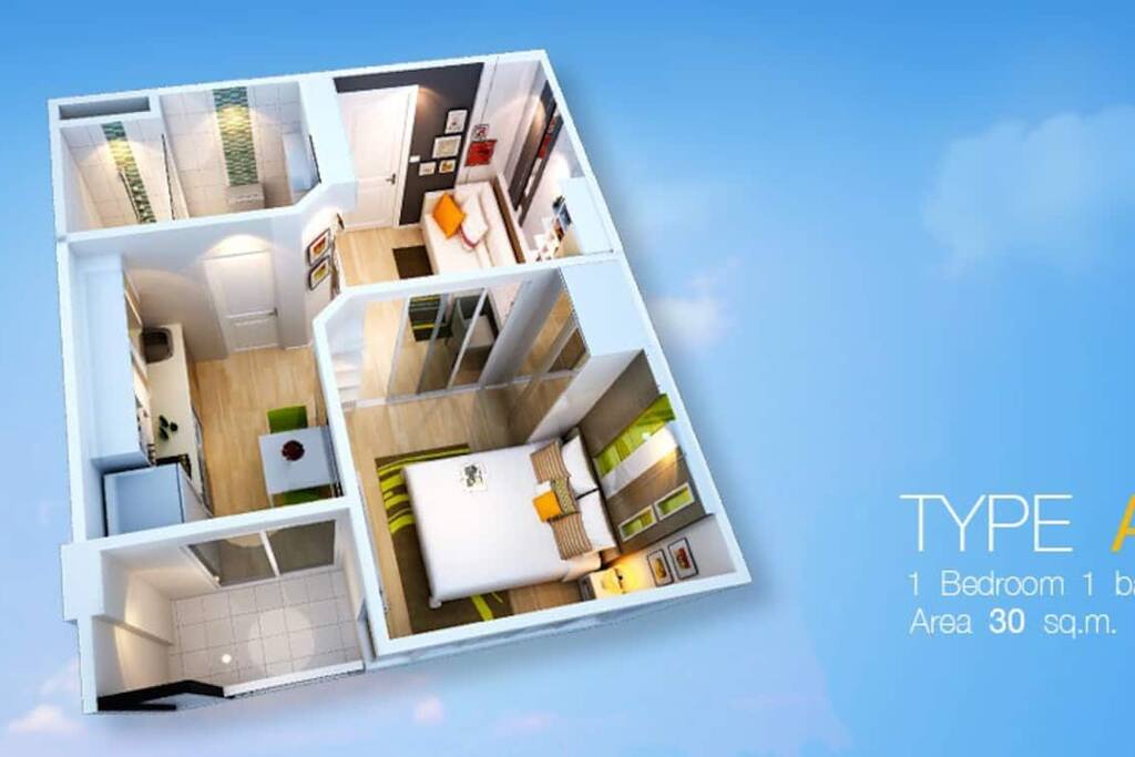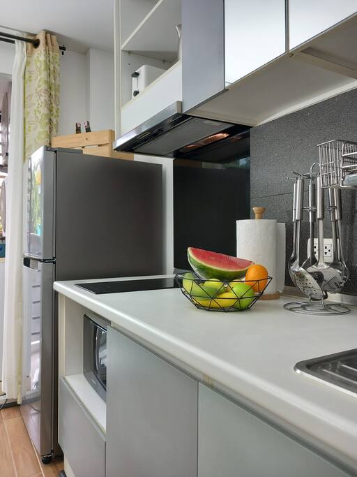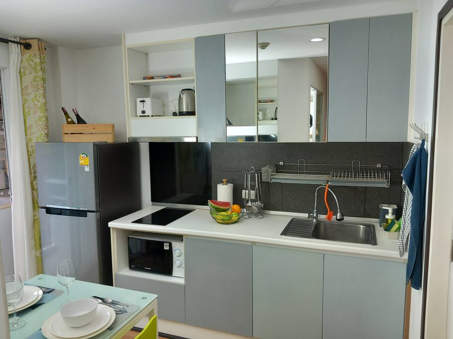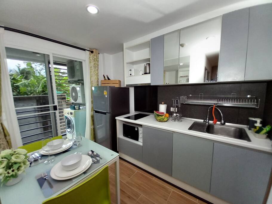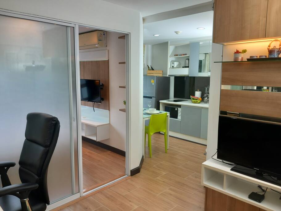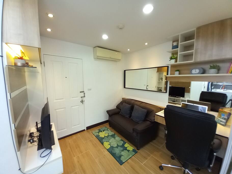This recent 30sqm condo on the 2nd floor features a separate bedroom, a lounge and a fully equipped kitchen. A washing machine, microwave, 2 aircon units, TV (with Chromecast) and a small balcony.