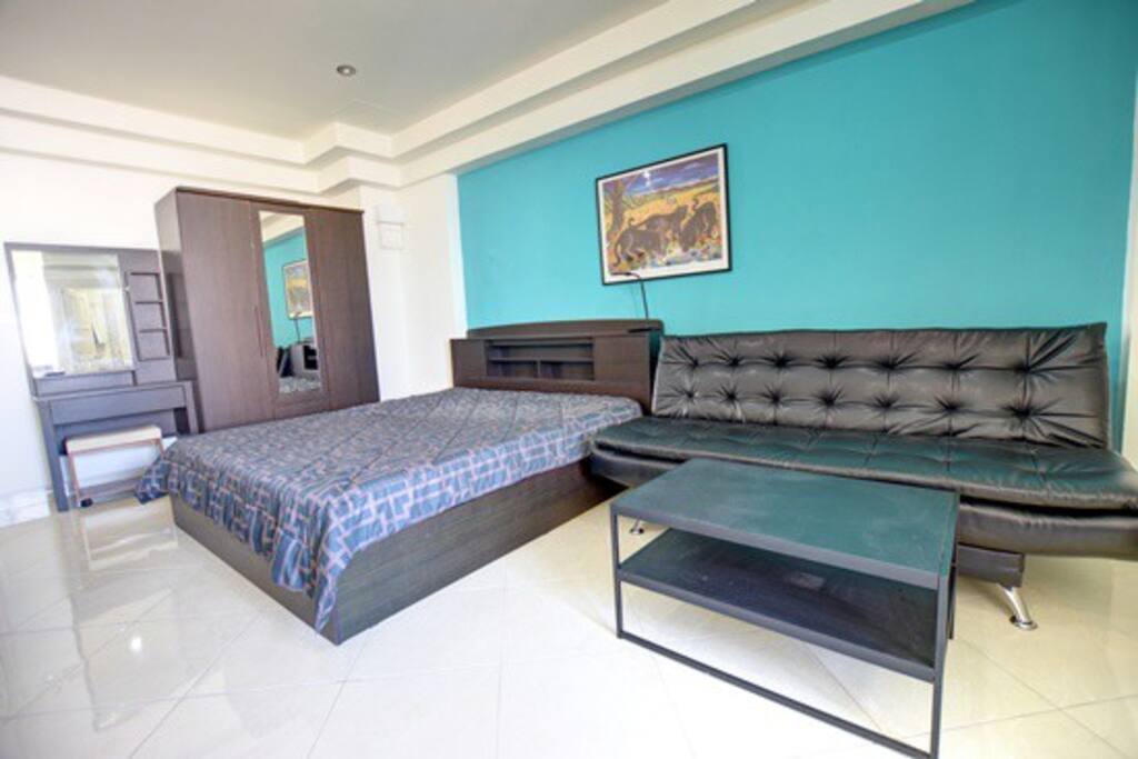 You’ll have full private access to the studio, including the king bed, private bathroom, air conditioning, smart TV, Wi-Fi, and a kitchenette. The building has secure access and a lift for easy entry to all floors. Please note that there is no pool or gym available in the building.