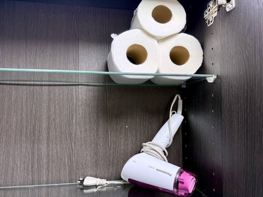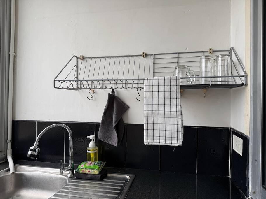 Inside, the space features a simple modern look with black-and-white tones and all the basics for a comfortable stay, including a king-size bed, air conditioning, smart TV, Wi-Fi, and a convenient kitchenette. While the building doesn’t offer a pool or gym, you’ll find everything you need just outside—from restaurants and cafes to shops and nightlife.