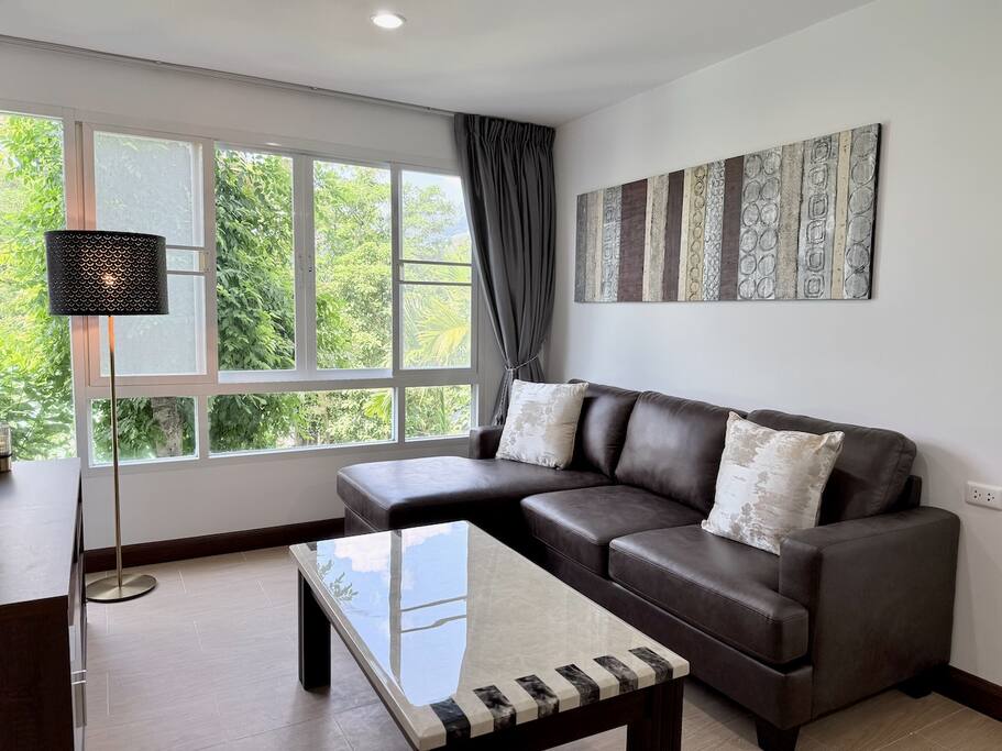 Newly renovated 73 sqm 2-bedroom condo just 15 mins from Patong, with mountain and garden views. Enjoy a spacious layout, private bathtub, full kitchen, 55″ Smart TV, office space, and ultra-fast fibre internet (1000/500 Mbps). Ideal for families, couples, or workcations. Guests have access to a pool, gym, laundry shop, 24/7 security, and the cozy Jada’s Café right in the building.