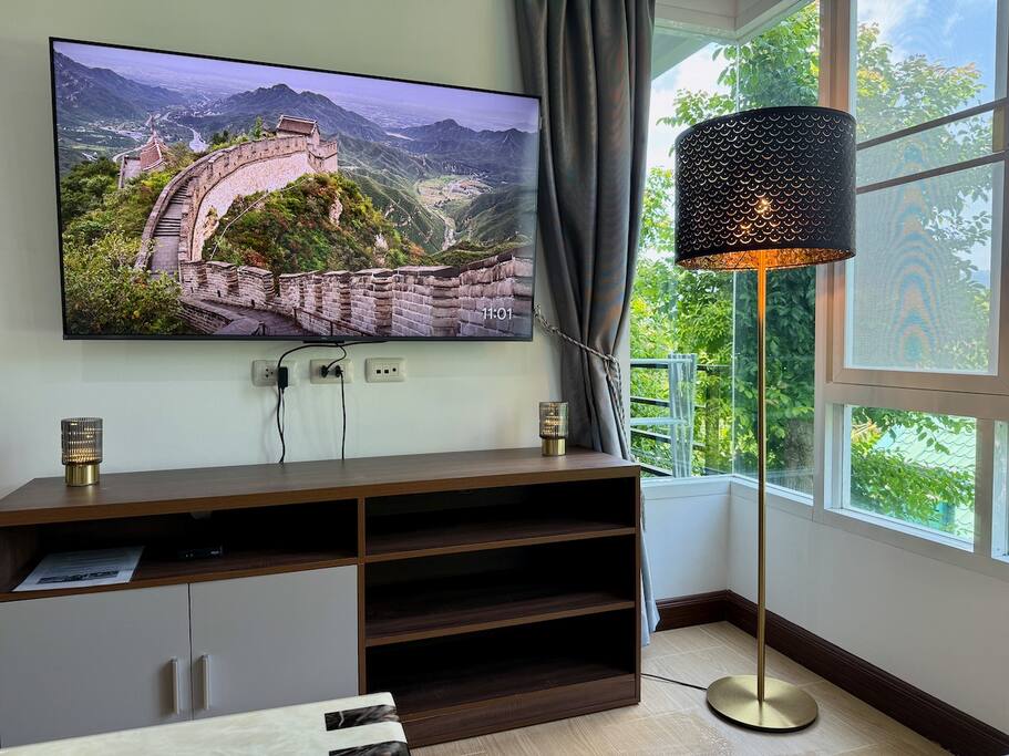 Inside, you’ll find a thoughtfully designed layout with plenty of room to unwind. The highlight? A private bathtub to soak and relax after a day of exploring. The apartment also includes a full kitchen, washing machine, two cozy bedrooms, and a comfortable living area with a 55-inch Smart TV.