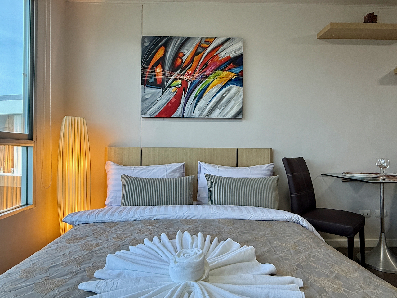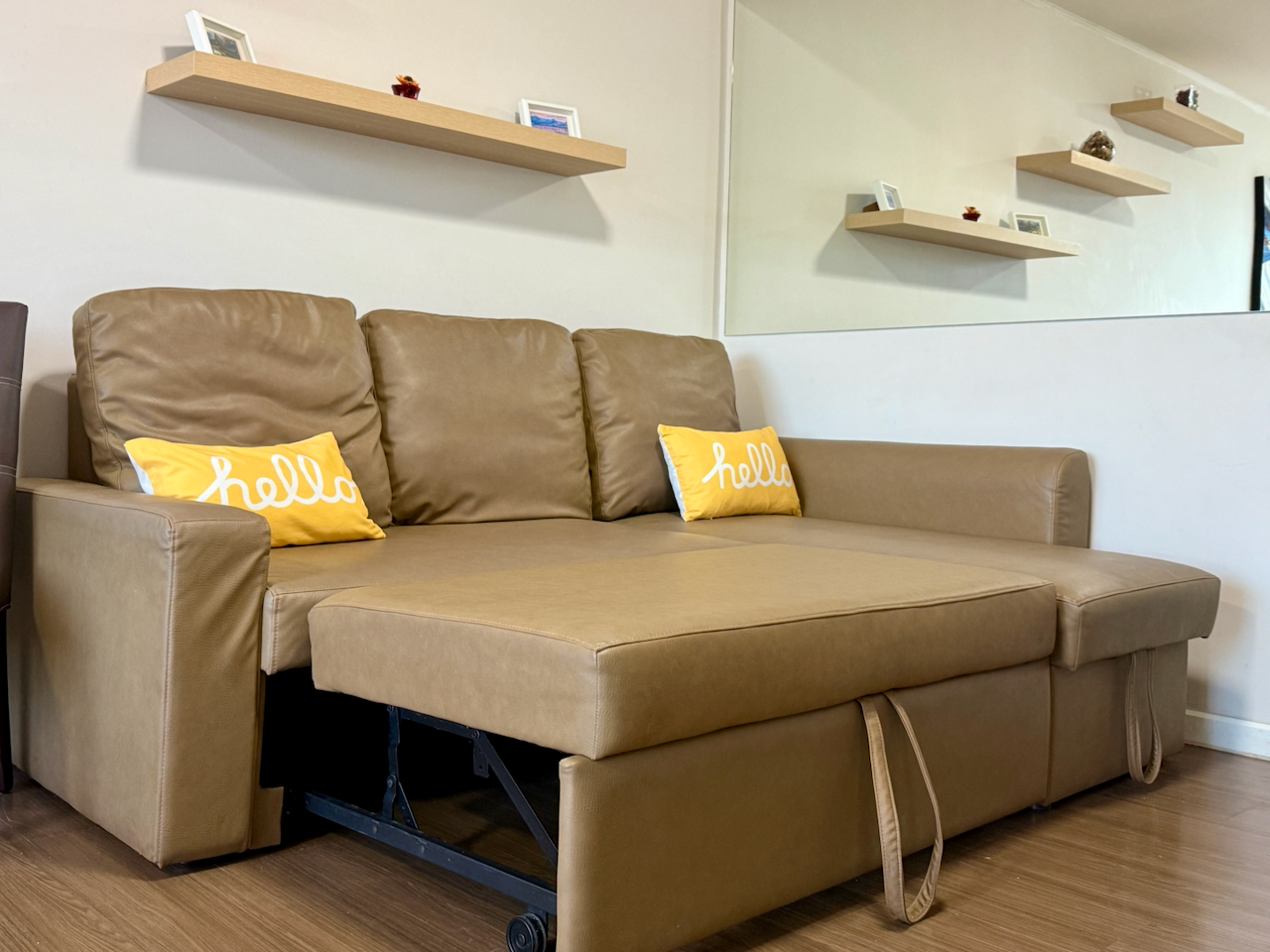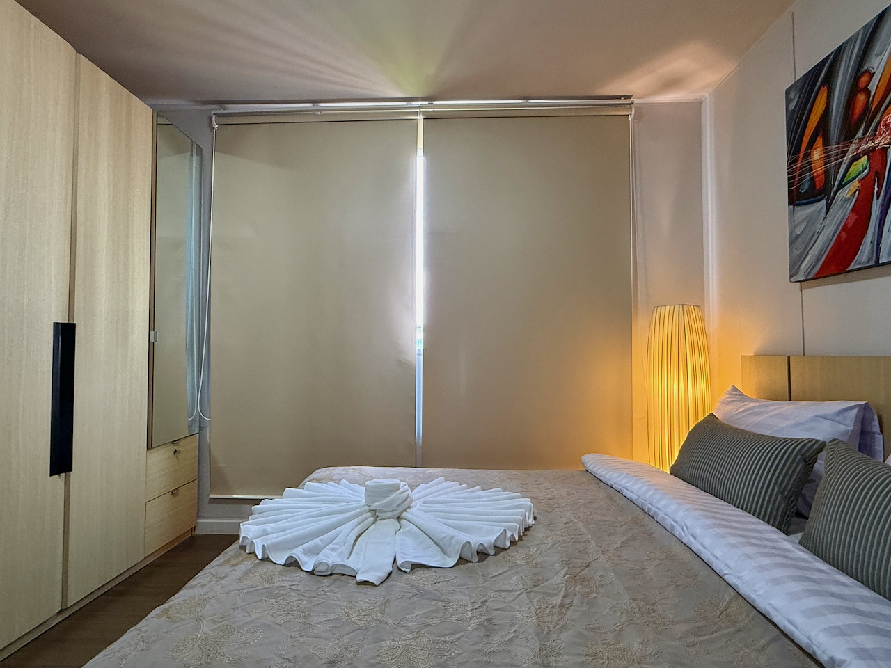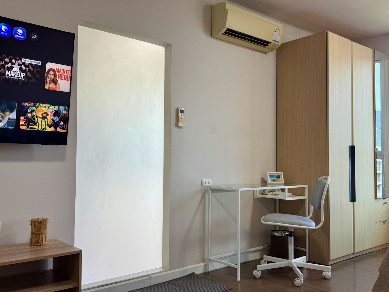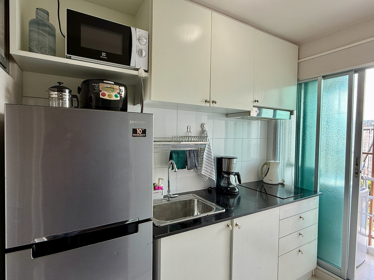 Perched on the 8th floor of DCondo Creek, this bright 30 sqm studio combines comfort and convenience with open views of the pool and gardens. It comes with a queen-size bed, a sofa bed, a fully equipped kitchen, air conditioning, a Smart TV, high-speed internet, a dedicated workspace, and a balcony with a washing machine.