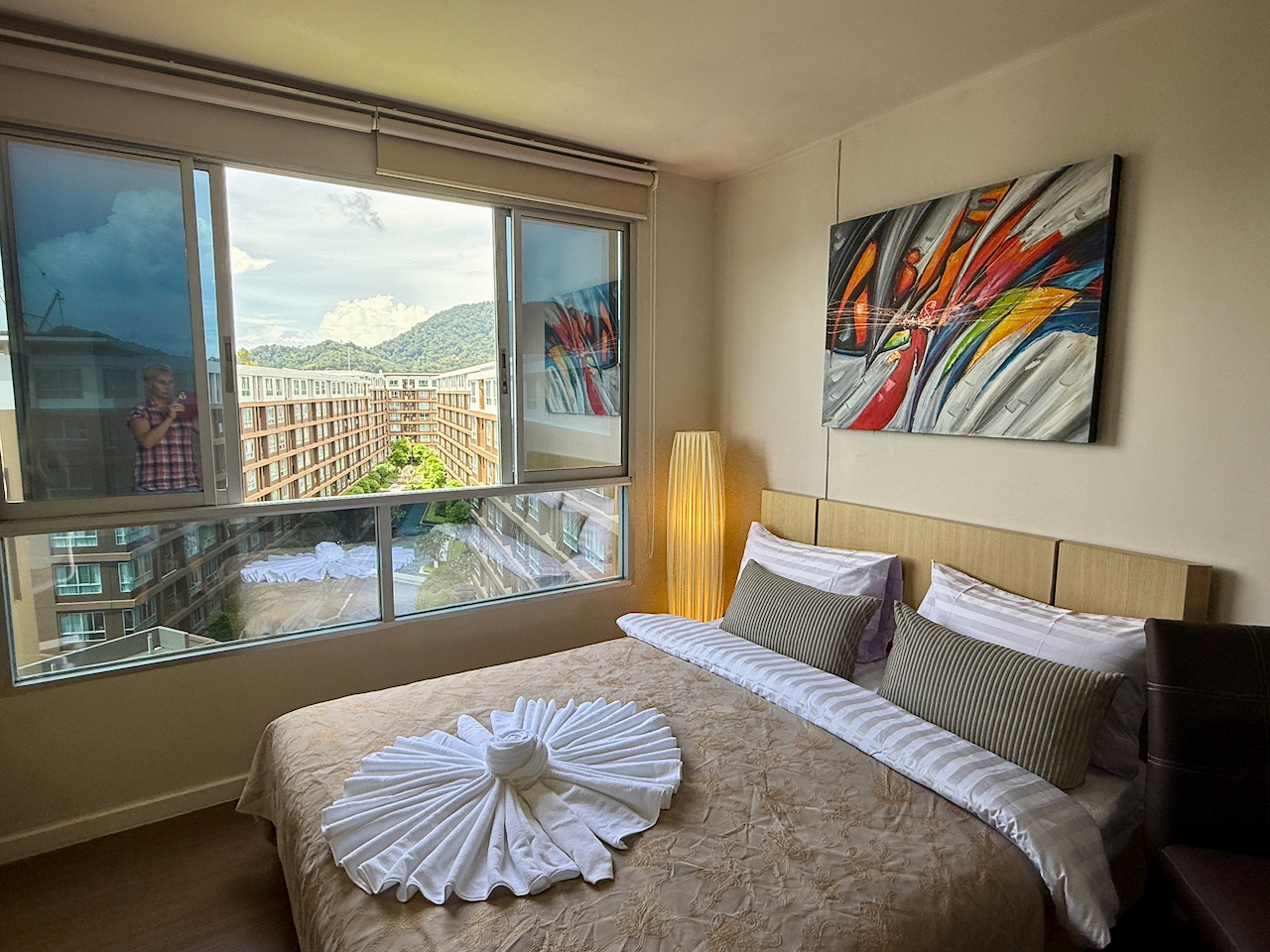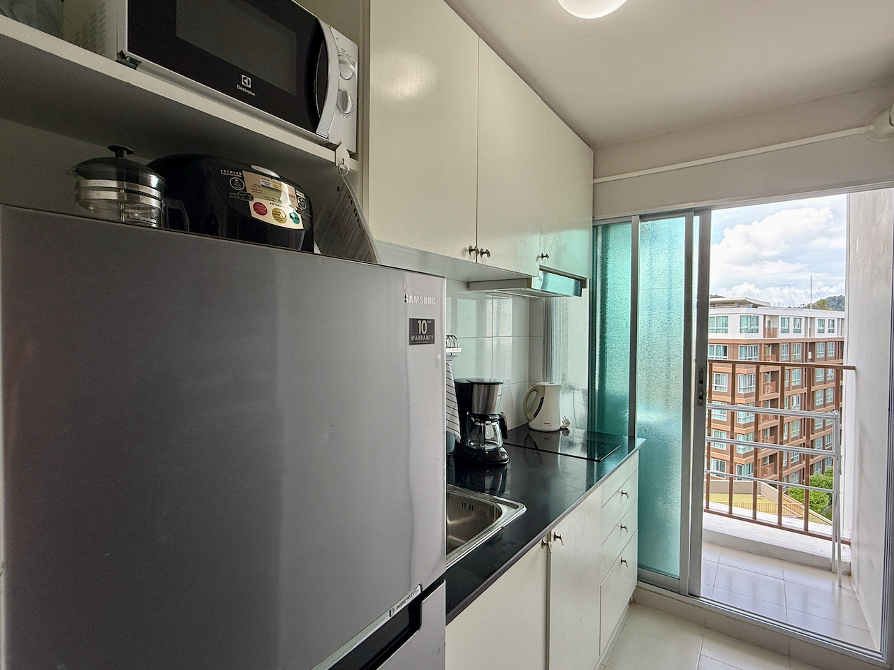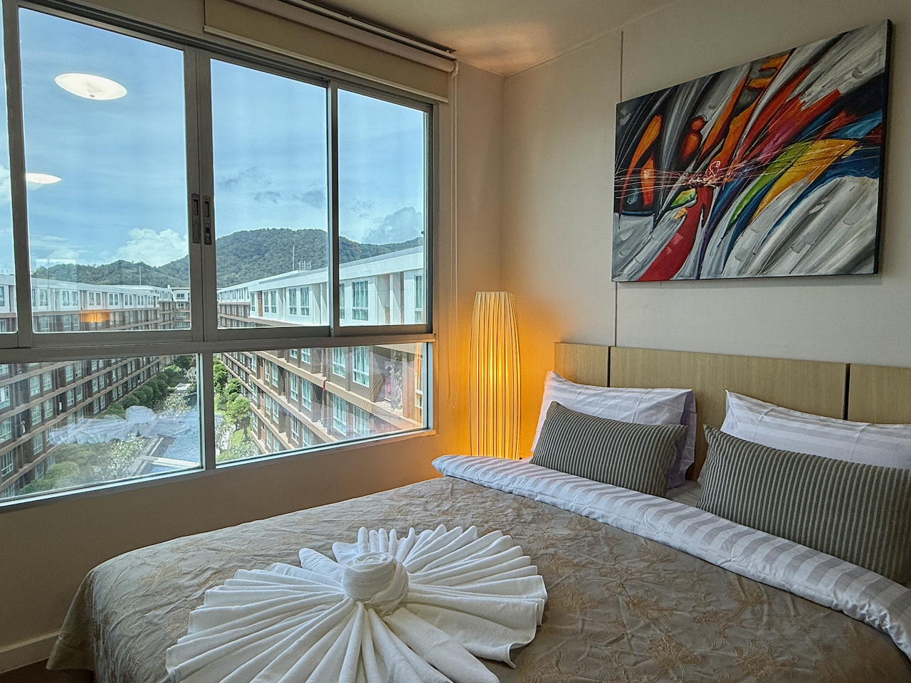 Central, 15-20mn ride from Patong Beach and Phuket Town, ideal for people who want to live in a quiet area and explore the island. Comfortable condo in a modern building, fully equipped. Access to a nice gym and a stunning 100m swimming pool.